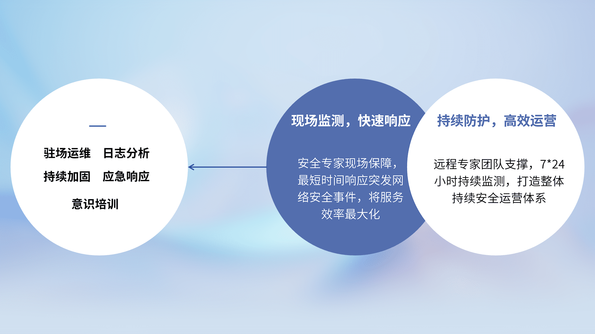 7X24小时持续监测安全事件,保持安全策略有效性,降低资产脆弱性风险,,,精准拦截黑客攻击,,,减少被黑客利用的机会,,,,第一时间遏制,,降低损失。。